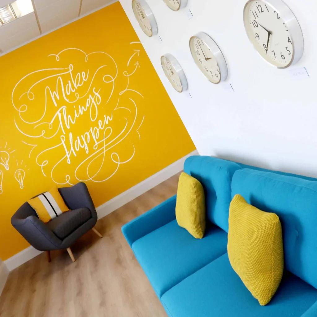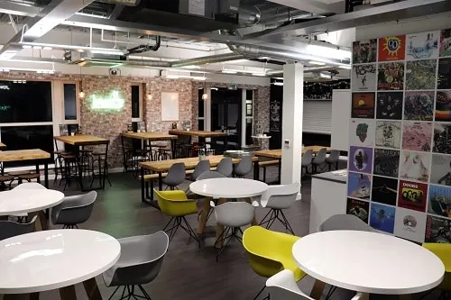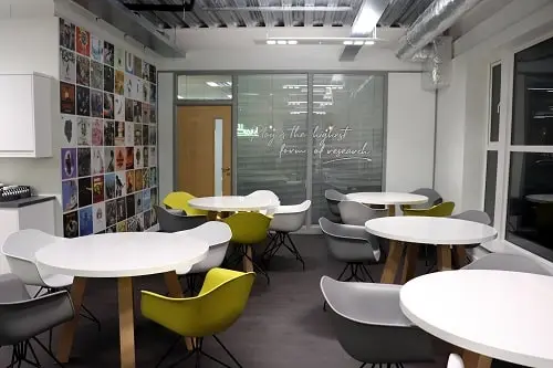 The restaurant and breakout area called ‘Brew’ only serves nutritious food and drink and the walls are decorated with famous music album covers. The final phase saw a further new breakout area and seating for employees to take time away from the office. The main wall includes a mural designed by Emerald employees following an internal competition.
