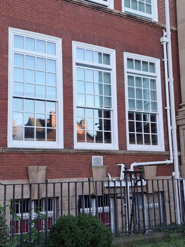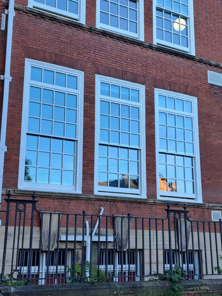 - Scaffolding was erected on all 16 elevations of the school to facilitate the replacement of 75 traditional timber sash windows.