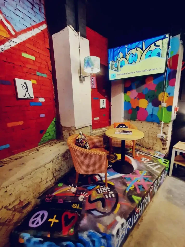 The Grand Hotel in Brighton, a renowned and historic landmark, is synonymous with elegance and luxury. However, its basement level, an underutilised space, was in need of transformation to better serve the staff who support the hotel’s daily operations. Recognising the importance of providing employees with a functional and enjoyable space to relax and rejuvenate, the management of the Grand Hotel decided to convert the unused basement into a staff canteen and relaxation area with a modern street art feel.